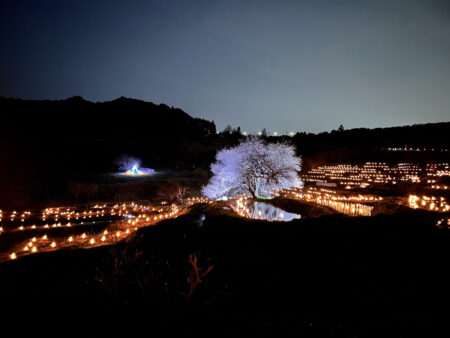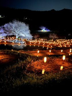 第二部の灯りの時間は、桜の咲くはるのただなで、シュレーゲルアオガエルの合唱の中、ろうそくの灯りゆらぐ一夜限りの幻想風景を鑑賞します。