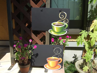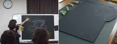 黒い部分に、普通のチョークでメニューやメッセージを書くことができます。
