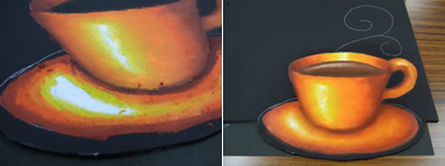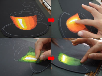 Pointは、薄い色→濃い色へ。戻ってはいけません。(戻るときは指を拭きましょう。じゃないとみんな濃い色になってしまうのです・・・!そして私は、白い部分がどんどん無くなっていきました・・・)