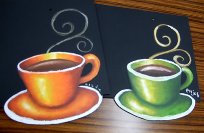 後半は、実際に描いてみよう!ということで、配られたボードに色を塗って完成させます。
